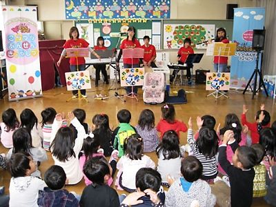 【神戸】日本自動車連盟(JAF)兵庫支部(四宮陸男支部長)はこのほど、三木市の自由ヶ丘保育園で幼児向けの交通安全教育を目的に、「JAF交通安全ドレミぐるーぷ」公演を行った。 60人の園児を前に、ボランティアメンバーが歌や演奏を交えながら、...