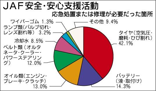 JAFワンポイントアドバイス、タイヤの不具合が最多12万8千件に