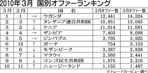 トレードカービュー 3月ランキング、新興国の問い合わせ増え過去最高