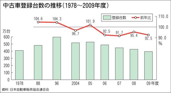 2009年度の中古車販売台数は700万台に届かず―。日本自動車販売協会連合会(自販連、天野洋一会長)がまとめた09年度中古車登録台数は、前年度比7・5%減の394万7289台と4年連続マイナスで、ピーク時の1996年度と比べて約6割の水準...