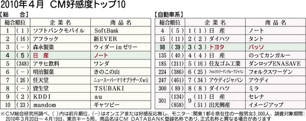 CM総合研究所(関根建男代表)がまとめた4月のCM好感度ランキングによると、ソフトバンクモバイルの携帯電話「ソフトバンク」が独走を続けている。4月度調査でも男女ともに幅広い年齢層で高い支持を集めた。2位はアフラックの「新EVER」が再浮上...