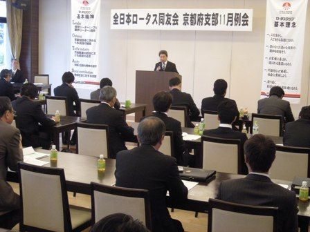 【京都】全日本ロータス同友会京都府支部(堀井榮司支部長)は14日、京都府宮津市の天橋立ホテルで「2011年11月北部例会」を開いた。 1、2部構成で本部・ブロック・各委員会報告と「秋のキャンペーン目標達成」について協議した。 会に先立ち、...