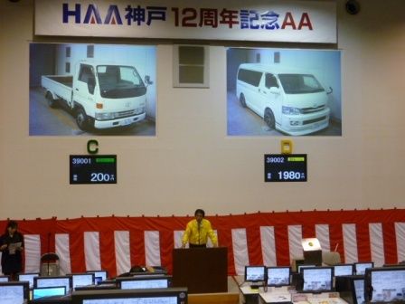 【神戸】HAA神戸(山口勝治社長、神戸市中央区)は19日、「HAA神戸12周年記念AA」を開いた。出品台数は9980台と1万台に迫り、成約率は42・1%だった。雨模様の中、多数の来場者が集まり活発な競りが展開された。 山口社長は、競り開始...
