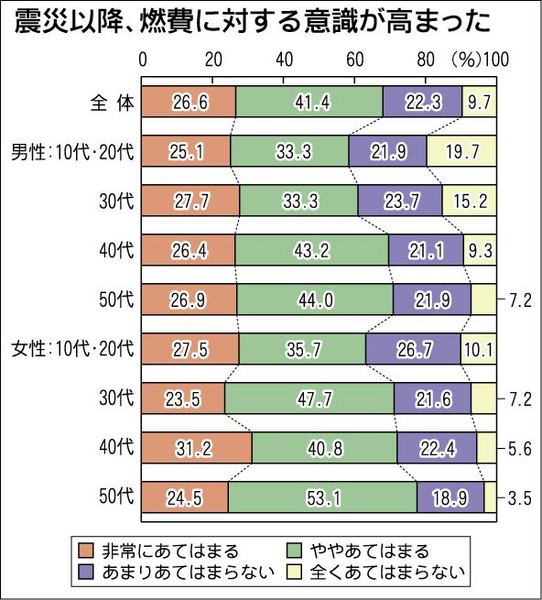 ソニー損害保険(山本真一社長、東京都大田区)は、「2011年全国カーライフ実態調査」を実施した。その結果、東日本大震災以降では車の運転を控えるなど、自動車ユーザーの節約意識が高まったことが明らかとなった。エコカーへの関心やエコドライブの実...
