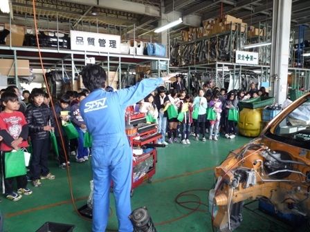 自動車リサイクル事業者の三重パーツ販売(齋藤貢社長)の本社へ、11月25日に松阪市立天白小学校5年生73人が社会見学に訪れた。学校で習う環境に優しいリサイクルの授業の一環で、リデュース(廃棄物の発生抑制)、リユース(再利用)、リサイクル(...