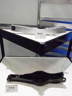 「社内からは美しくないといわれています」と苦笑いするのは、中空のアルミニウムの押し出し材でリアロアアームを開発したスズキの担当者。キザシに採用したこのロアアームは、従来の鋼板製に比べ重量50%減と大幅な軽量化を果たした。軽量化には材料置換...