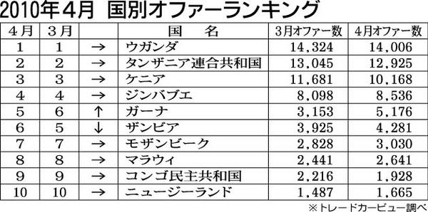 カービューは、中古車輸出支援サイト「トレードカービュー」に寄せられた2010年4月のオファー(問い合わせ)数国別ランキングをまとめた。これによると、オファー数全体は過去最高を記録した3月を更新したが、4月ランキング自体は3月と大きな順位変化...