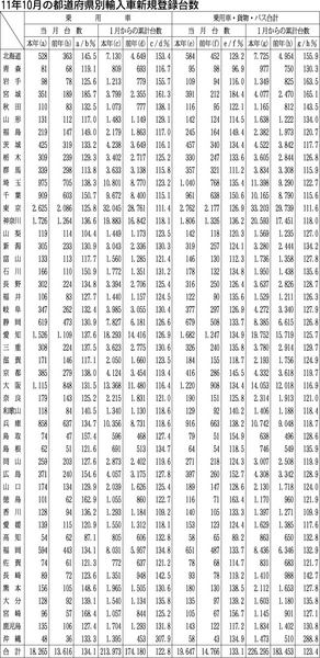 【都道府県別輸入車新規登録台数(2011年10月)】