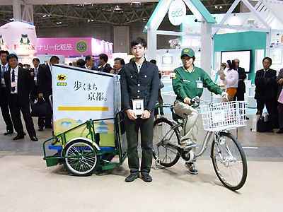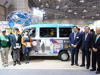 ヤマト運輸は15日、東京都江東区のビッグサイトで「歩くまち・京都」のグッドデザイン電気自動車(EV)の完成披露を行った。デザイン募集で大賞と優秀賞に選ばれたデザインを軽商用EVと自転車を使用する集配用ボックスコンテナにラッピングした。同社...