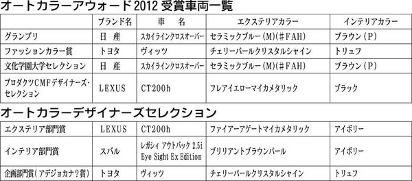 オートカラーアウォード2012、グランプリはスカイラインクロスオーバー