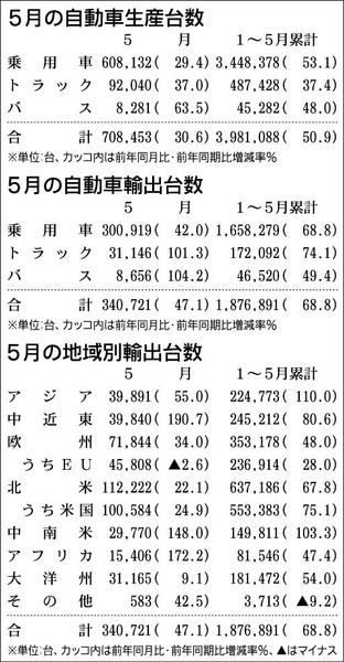 2010年5月の生産・輸出実績