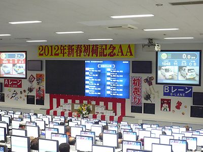 東京都中古自動車販売商工組合(JU東京、金子昇理事長)は9日、「2012年新春初荷記念AA(オートオークション)」を埼玉県越谷市の常設AA会場で開いた。この日から競りを初めて2レーン制に移行。オークションは順調に進行し、四輪車の部は午後3...