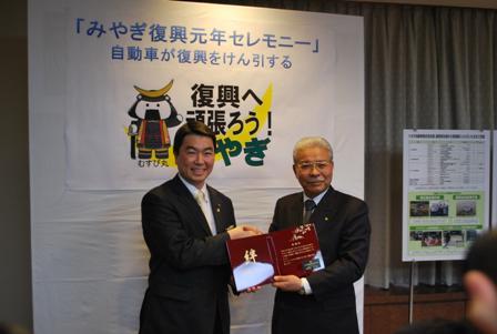 【仙台】宮城県は11日、自動車産業を通じて東日本大震災からの地域産業の復興と振興を目指すとして、トヨタ自動車の新美篤志副社長らグル―プ8社の関係者を招き、県庁で「みやぎ復興元年セレモニー~自動車が復興をけん引する~」を開催した。東北を中部...