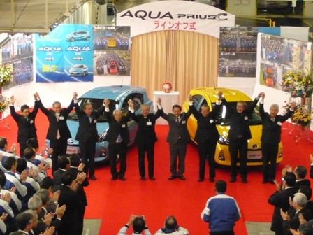 トヨタ自動車の子会社で車両開発、組み立てを行う関東自動車工業岩手工場で17日、トヨタの新型ハイブリッド車(HV)「アクア」のラインオフ式が行われた。式典にはトヨタの豊田章男社長や関東自工の服部哲夫社長、岩手県内のトヨタ系ディーラートップ、...