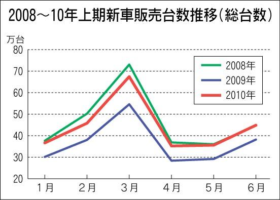 日本自動車販売協会連合会(自販連、天野洋一会長)と全国軽自動車協会連合会(全軽自協、小谷忠幸会長)が発表した2010年上期(1~6月)の新車販売台数は、265万7千台となり、半期ベースで2年ぶりに前年実績を上回った。ただ、金融危機前の08...