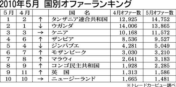 トレードカービュー、5月の国別オファーランク