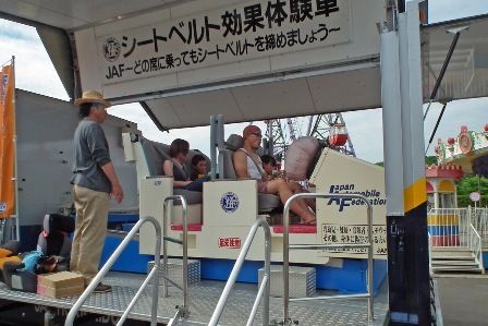 【登別】日本自動車連盟(JAF)室蘭支部(山野下義信支部長)は、シートベルト効果体験会を登別マリーンパークニクスで実施した。 シートベルトコンビンサーを会場に用意。家族連れなど約110人が時速5キロメートル走行時の衝撃を体験した。「思った...