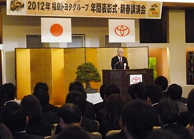 【福島】福島トヨタ(佐藤健介社長)、トヨタL&F(同)、トヨタレンタリース福島(同)の福島トヨタグループ3社は16日、「2012年福島トヨタグループ年間表彰式・新春講演会」を福島市のウェディングエルティで開催した。今年のテーマを「スピード...
