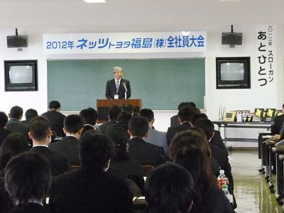 【福島】ネッツトヨタ福島(大沼健次社長)は16日、福自販会館で「2012年全社員大会」を開催した。役員や社員など147人が出席。今年のスローガンを「あとひとつ」とし、販売をもう1台、保険をあと1件、訪問するならあと1人など「ひとつでも多く...