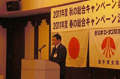 【盛岡】全日本ロータス同友会岩手県支部(松平盛一支部長)は10日、盛岡市内の会議室で「2011年度秋の総合キャンペーン表彰式」と「2012年度春の総合キャンペーン決起大会」を行った。大会で松平支部長は「東日本大震災で被災した沿岸部の同友の...