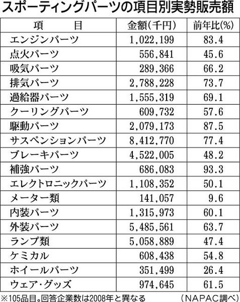 日本自動車用品・部品アフターマーケット振興会(NAPAC、田中毅会長)は、2009年のスポーティングパーツ市場に関する調査をまとめた。調査対象とした公道走行用110品目の実勢販売総額は前年に比べて4割減の375億6613万円となったことが...