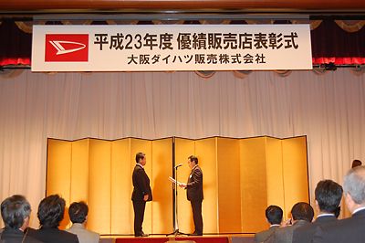 販売店とともに歩む姿勢を示す 大阪ダイハツ(三宮清士社長、大阪市福島区)は19日、大阪市都島区の太閤園で「2011年大阪ダイハツ優績販売店表彰式」を開催した。当日は大阪府内の販売協力店から180人が出席。年間販売台数389台の北伊丹ダイハ...