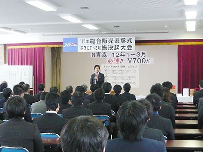 【青森】ネッツトヨタ青森(小野大介社長)は13日、青森自動車会議所3F会議室で「2011年総合販売表彰式並びに1~3月総決起大会」を開催した。大会では11年の販売実績に対して優秀な成績を収めた店舗やスタッフらを表彰したほか、年度末商戦期に...