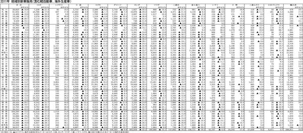 【2011年 地域別新車販売(含む軽自動車、海外生産)】