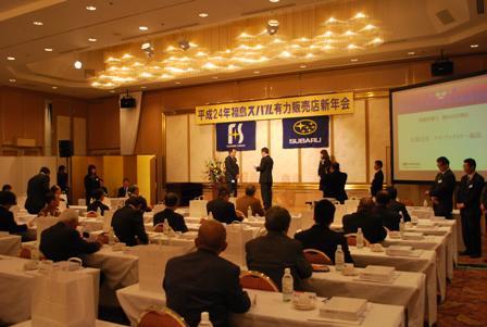 【いわき】福島スバル(飯田登社長)は20日、市内のホテルで「2012年福島スバル有力販売店新年会」を開催した。スバル車を取り扱う県内有力業販店34社の代表者に加え、来賓に富士重工業からスバル国内営業本部の太田宏営業第一部長ら2人が参加、合...