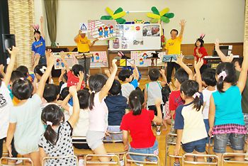 【岐阜】日本自動車連盟(JAF)岐阜支部(加藤昌弘支部長)は14日、今年2回目の幼児向け交通安全教室「JAF交通安全ドレミぐるーぷ公演」を、岐阜市内の京町保育所で催した。3~5歳の園児119人に対し、「道路へ飛び出さない」「横断時の左右確...
