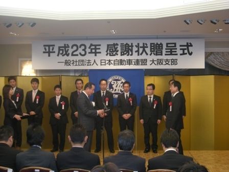 日本自動車連盟(JAF)大阪府支部(齊藤光保支部長)は1月27日、リーガロイヤルホテル大阪(中之島)で「2011年感謝の会」を開催した。当日はJAF会員獲得貢献者を表彰。受彰会社は延べ61社、個人は58人に上った。 JAFの田中節夫会長は...
