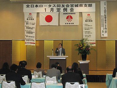 【松島】全日本ロータス同友会宮城県支部(佐藤拓郎支部長)は1月22日、松島一の坊で定例会を行った。同友会メンバーや提携企業など約60人が参加。新春講演会の講師には本紙の高橋賢治編集局次長を招き、「HV、EV時代の整備事業者の生き残り策」と...