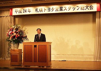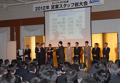札幌トヨタ 札幌トヨタ(石本康平社長)は「平成24年営業スタッフ総大会」を市内のホテルで開いた。今年の新車販売目標を前年比23・8%増の6660台と策定。昨年の優秀スタッフを表彰すると共に、今年の計画達成に向けて士気高揚を図った。 札幌トヨ...