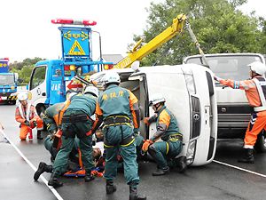○…「慎重に行え」―大きな指示の声が飛ぶ緊迫した空気の中、横転した車両に閉じ込められている負傷者を救出する。日本自動車連盟(JAF、田中節夫会長)は7月29日、警視庁多摩中央署と同第3機動隊と合同で、東京都多摩市のJAF中央研修センターで...