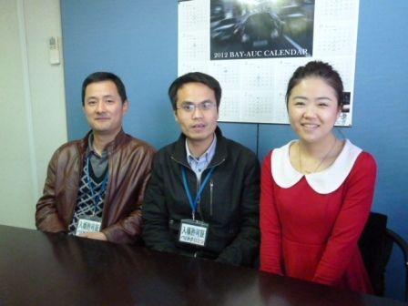 「日本の査定士は本当のプロ。競り会場の雰囲気も活発で非常に驚いた」。中古車オークション(AA)運営会社、蘇州福馬二手車服務有限公司(中国・蘇州)で主任査定士を努めるバン・ホウカさん(34、写真中央)は、研修で訪れたベイオーク(塩原淳平社長...