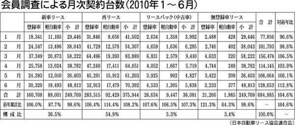 「収益が改善し企業活動が拡大する中で、リース需要は下期も増加傾向が続くだろう」―。大手リース会社幹部がこう指摘するように、自動車リース市場が回復局面を迎えている。日本自動車リース協会連合会(JALA、佐藤誠会長)のまとめによる2010年上...