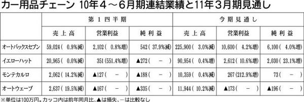 新車販売増による追い風はあったものの、ETC車載器特需の反動が影響―。上場する大手カー用品チェーンの2010年度第1四半期決算がまとまった。昨年は高速道路の休日利用割引でETC車載器の需要が急増し売上高をけん引したが、今年はその反動が響い...