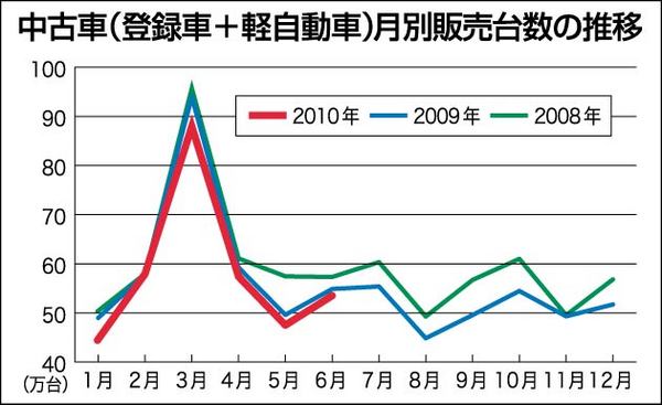 2010年上期(1~6月)は前年同月比マイナスで推移した中古車販売市場。一方、下期(7~12月)は環境対応車購入補助制度(エコカー補助金)が9月末で終了するのを受けて「再び中古車のメリットが注目されて活性化する」と期待感が高まっている。エ...
