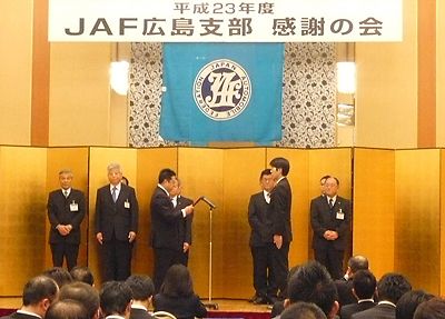 【広島】日本自動車連盟(JAF)広島支部(前泰弘支部長)は、広島市南区のホテルで2011年度「JAF広島支部感謝の会」を開催した。 前支部長は「昨年は東日本大震災やタイの洪水被害などで新車の供給遅れが生じ、販売面や獲得運動にも影響が表れた...