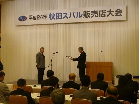 【秋田】秋田スバル(石川隆一社長)は15日、秋田キャッスルホテルで、協力販売店の代表者らを招き、「昴会総会」と「2012年販売店大会」を開催した。11年の新車販売活動で優秀な実績を挙げた販売店を称える表彰式典を行い、石川社長が受賞販売店の...