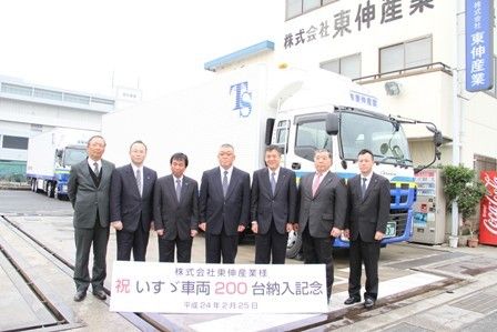 【神戸】車両販売整備のSGモータース(谷本育生社長、大阪市大正区)は、運送業・東伸産業(入江博夫社長)へのトラック累計販売台数が200台を超えたとし、2月25日に神戸市東灘区の東伸本社で「いすゞ車両200台納入記念式典」を開いた。2002...
