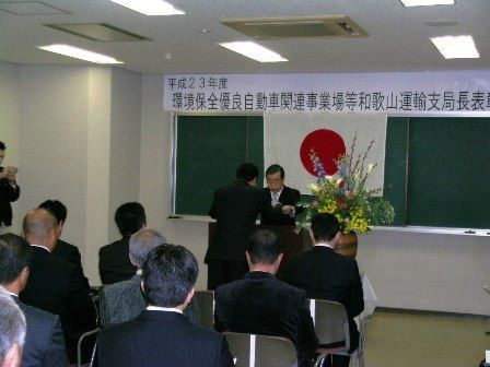 【和歌山】近畿運輸局和歌山運輸支局(平地俊司支局長)は2月23日、和歌山市の同支局で「平成23年度環境保全優良自動車関連事業場等和歌山運輸支局長表彰式」を開き、県内の整備事業場12社20事業場を表彰した。 平地支局長は「皆さんは環境に配慮...