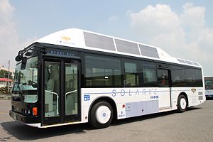 三洋電機と両備グループは26日、太陽電池を搭載したコンセプトバスを共同開発したと発表した。路線バスの屋根に2種類の太陽電池を搭載し、車内照明用の電源として使用する。公共交通バスに太陽電池が搭載されたのは世界初。 バスの屋根に三洋電機製のH...