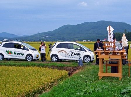 【東川】北海道三菱(北島克道社長)は23日、電気自動車「i―MiEV(アイ・ミーブ)」2台を東川町農業協同組合(板谷重徳代表理事組合長)に納入した。クリーン農業の啓発や営農指導車両として活用する。道内の農協で初の導入。 同農協は、有機栽培...