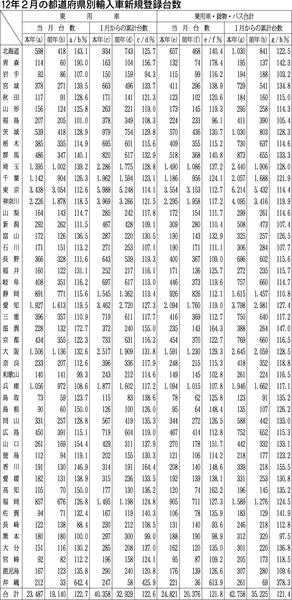 【都道府県別輸入車新規登録台数(2012年2月)】