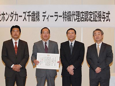 【千歳】ホンダカーズ千歳(九谷田旭社長)は、三井住友海上火災保険の「ディーラー特級代理店」認定を受けた。保険業務品質の向上を軸に、顧客との絆づくりに努める。 市内のホテルで開かれた認定証授与式に、九谷田社長、立花正志常務らが出席。同損保の...