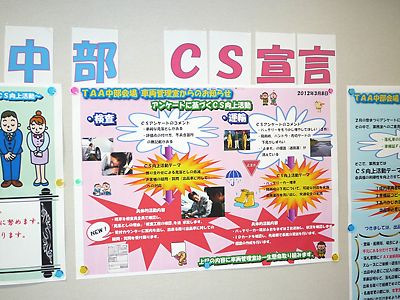 TAA中部は会員向けに「CS宣言」を掲げCS活動に取り組む。2月に実施したアンケート結果を踏まえ、「営業部員対応」「出品店・購買店の対応」「検査評価点」「書類の遅れ」などの項目を設定。営業室・業務室・車両管理室の各部署でテーマを設け、会場...