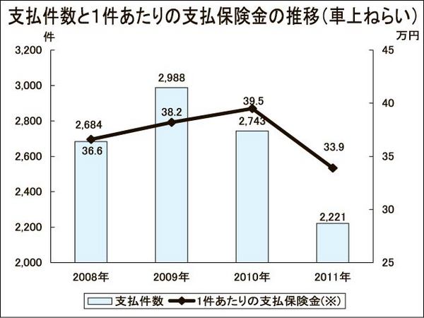 日本損害保険協会(損保協、隅修三会長)がまとめた2011年度自動車盗難事故実態調査によると、1件あたりの保険金支払い金額は、車両本体の盗難(車両盗難)が前年調査から増えたのに対し、車上ねらいは4年ぶりに減少に転じた。また都道府県別の保険金...