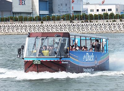 「福島県の被災者ら200人、水陸両用バス『スカイダック』に試乗、気晴らし」、日の丸自動車興業が特別ツアー主催