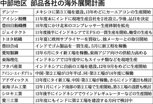 東日本大震災やタイの洪水影響による減産対応が終わり、新たな成長に目を向ける中部地区の部品メーカー。各社が中長期の海外展開について、次の一手を準備している。2011年から12年初頭はインドやインドネシアへの初進出や生産基盤の拡充を決める企業...